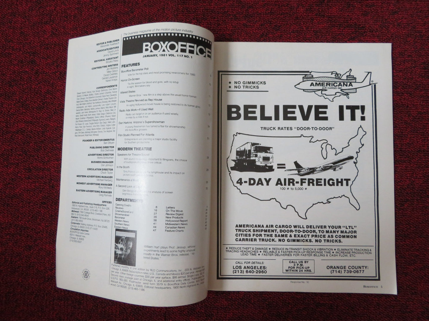 BOXOFFICE MAGAZINE JANUARY 1981 ALTERED STATES WILLAM HURT