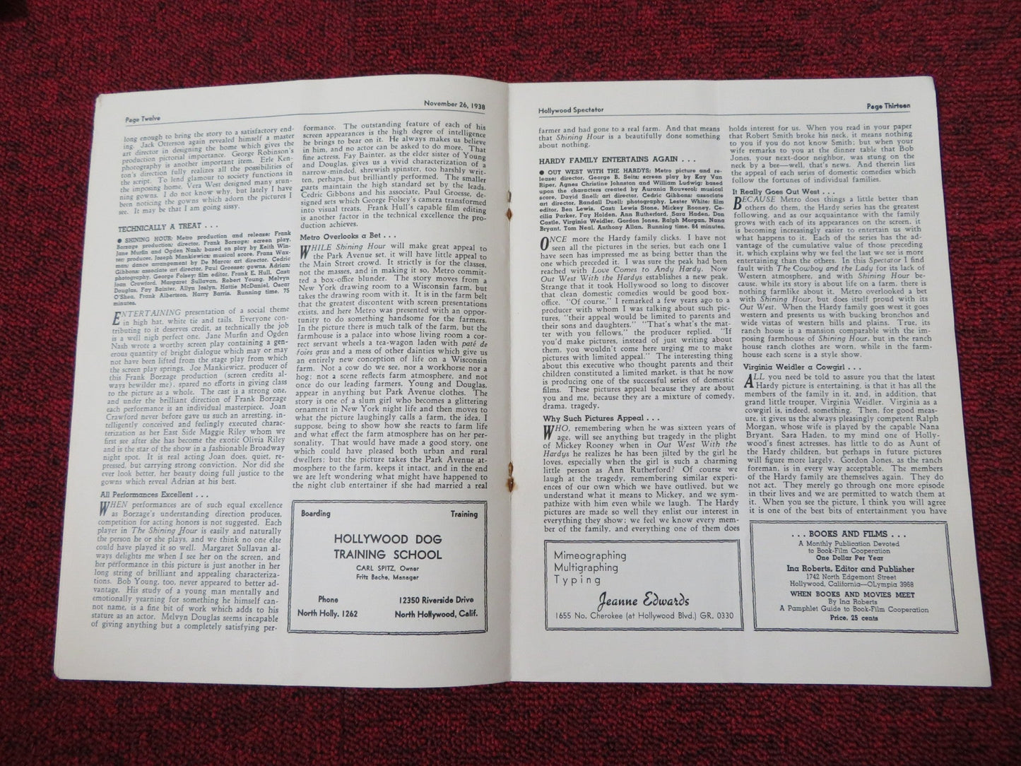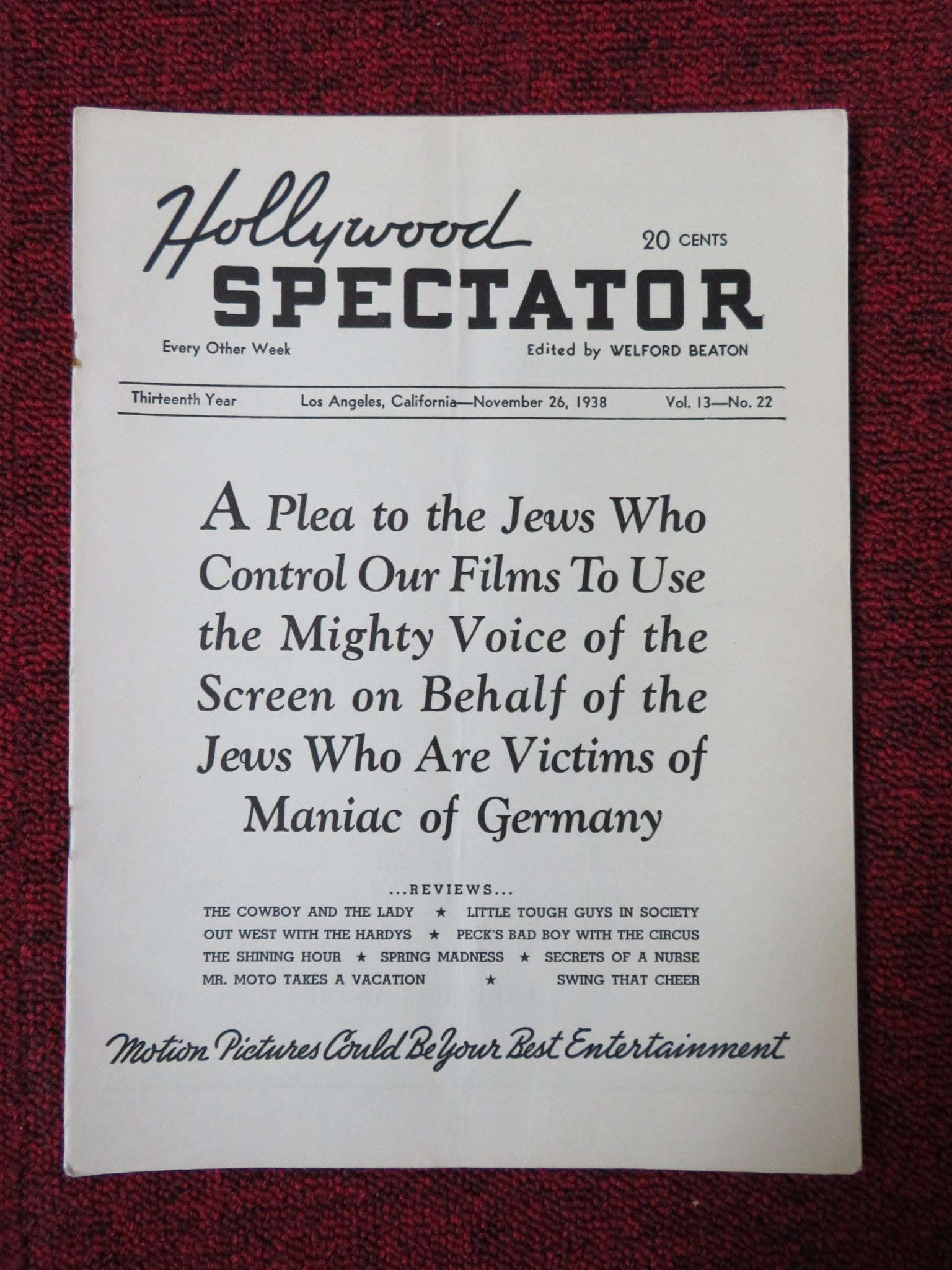 HOLLYWOOD SPECTATOR VOL.13 NO.22 1938
