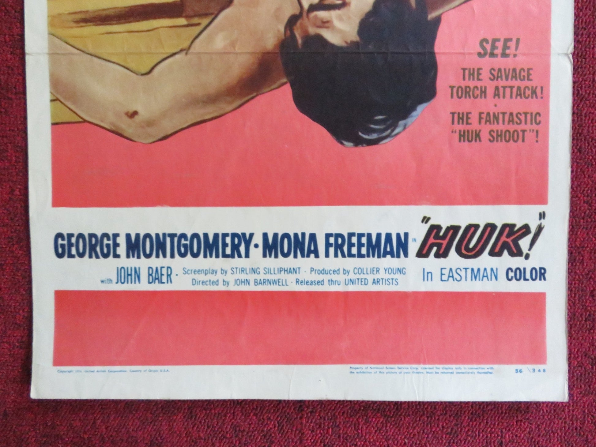 HUK! US INSERT (14"x 36") POSTER GEORGE MONTGOMERY MONA FREEMAN 1958