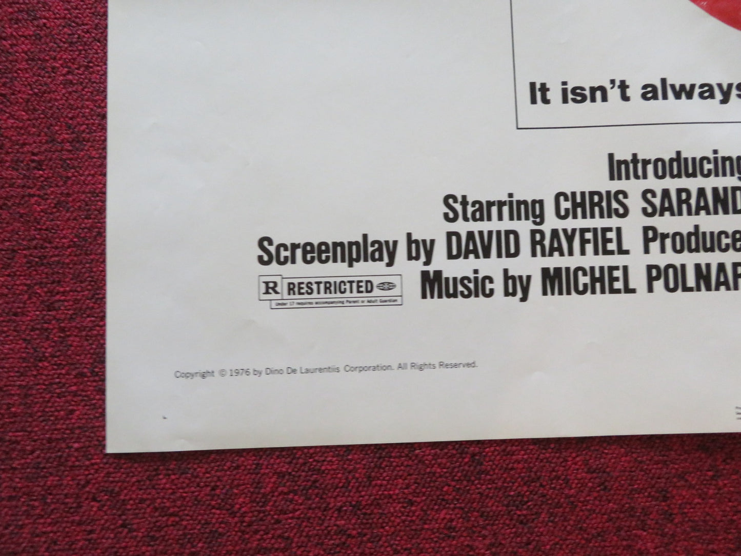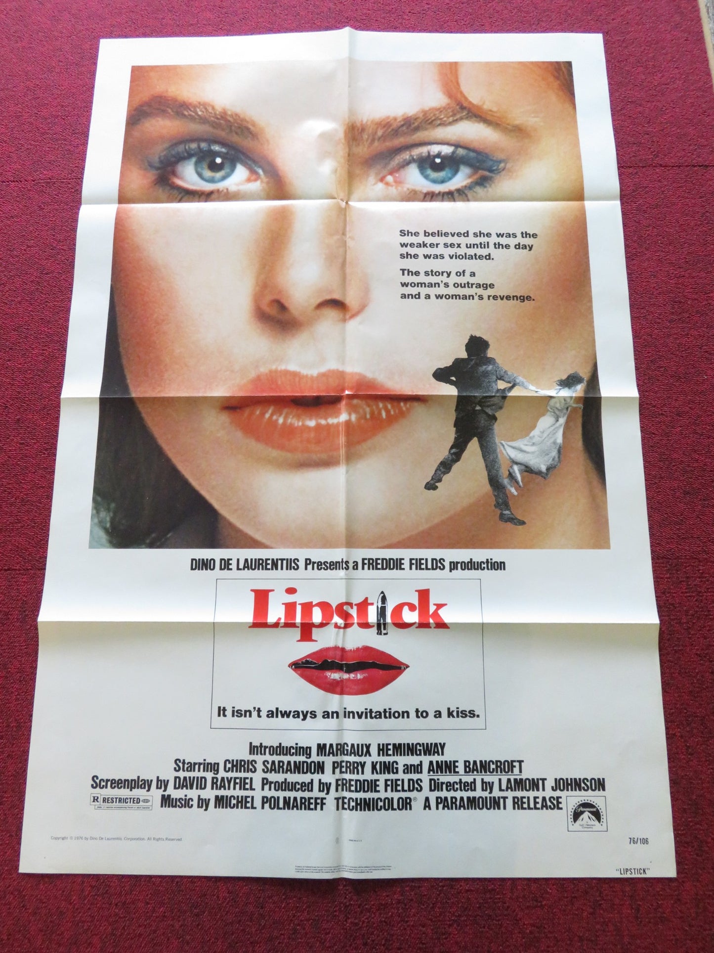 LIPSTICK FOLDED US ONE SHEET POSTER MARGAUX HEMINGWAY CHRIS SARANDON 1976