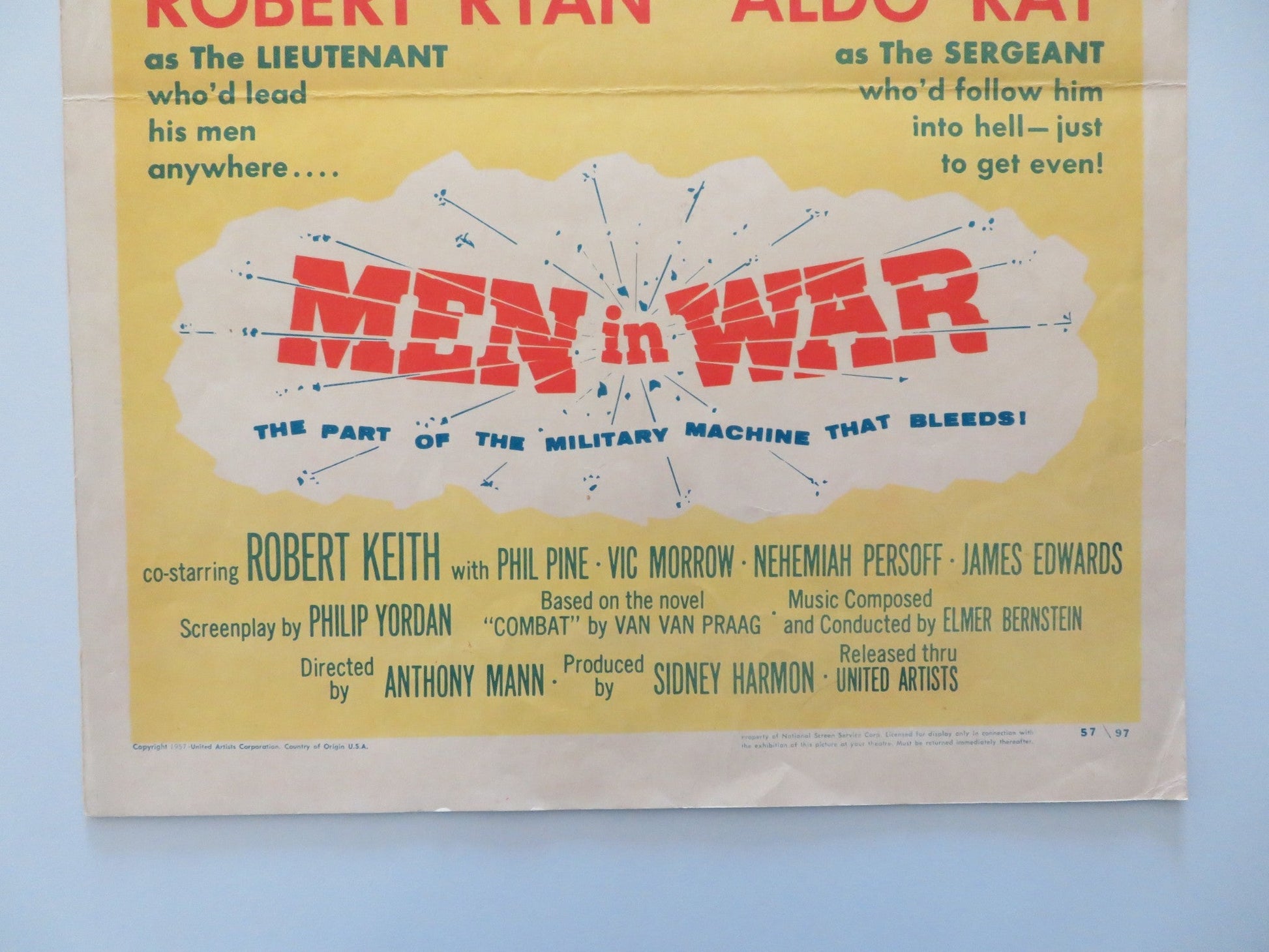 MEN IN WAR US INSERT POSTER ROBERT RYAN ALDO RAY 1957