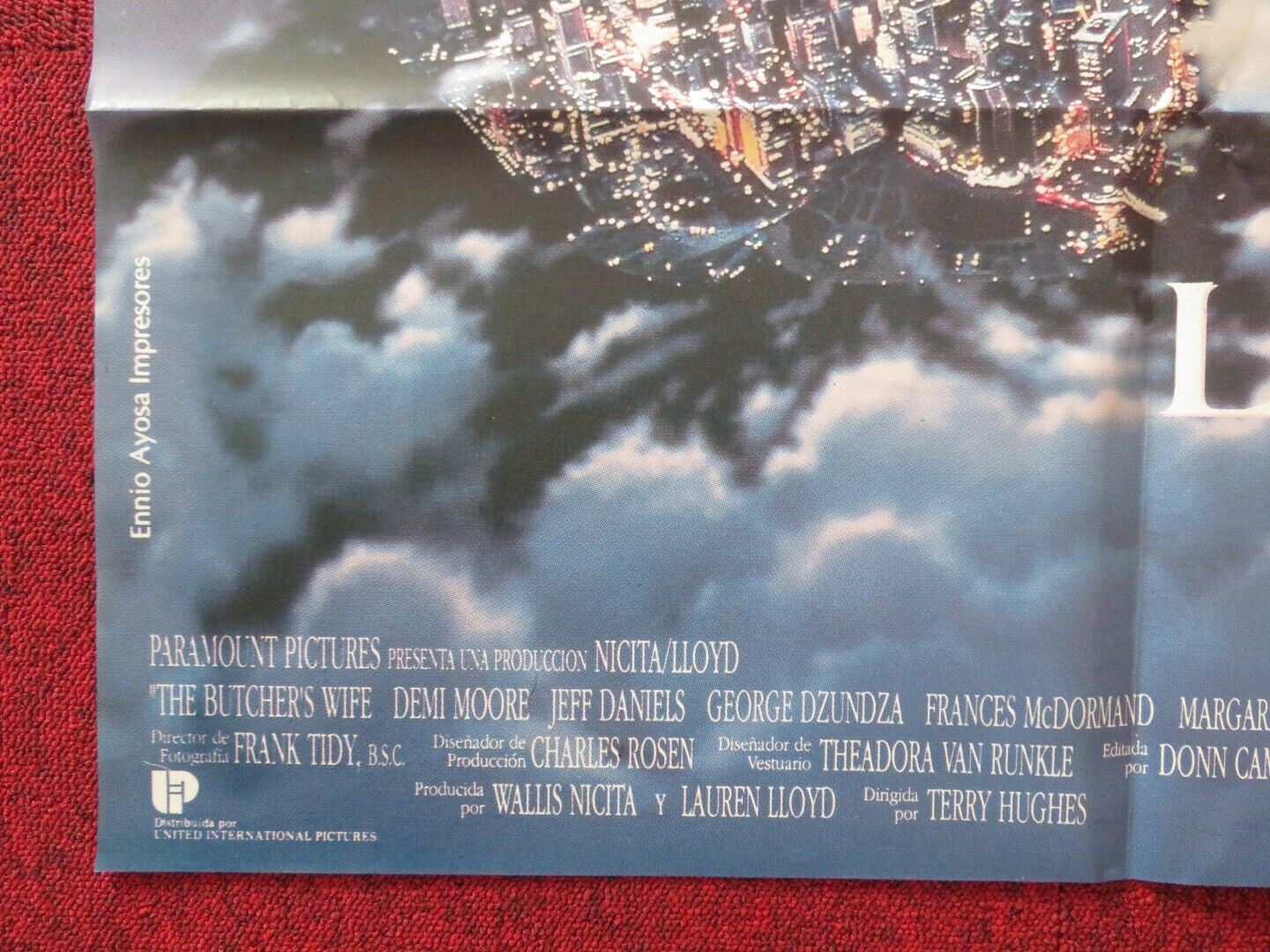 THE BUTCHER'S WIFE ARGENTINA ONE SHEET FOLDED POSTER DEMI MOORE JEFF DANIELS