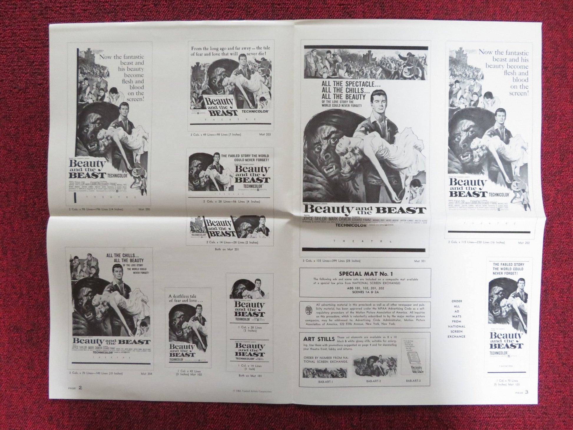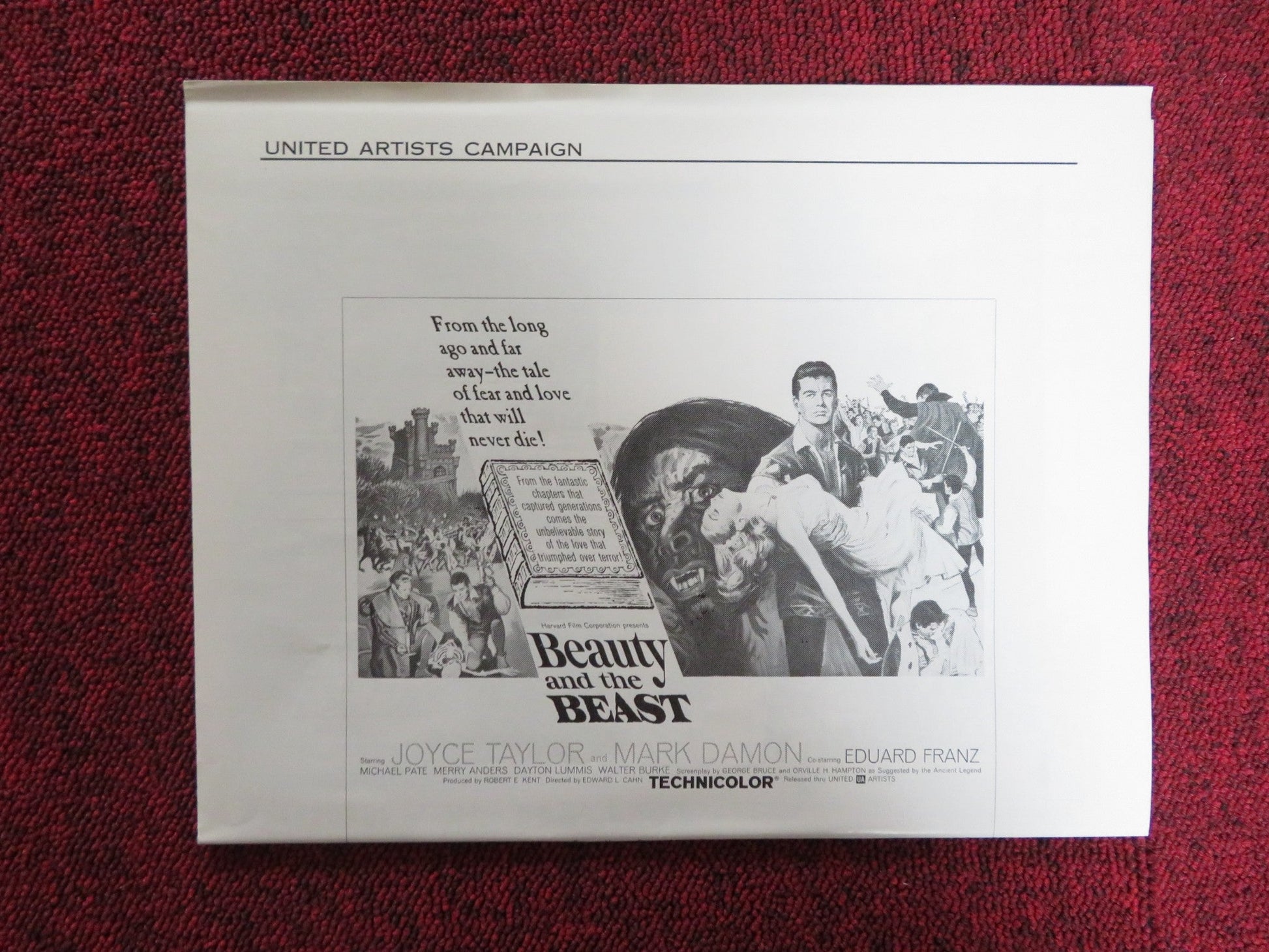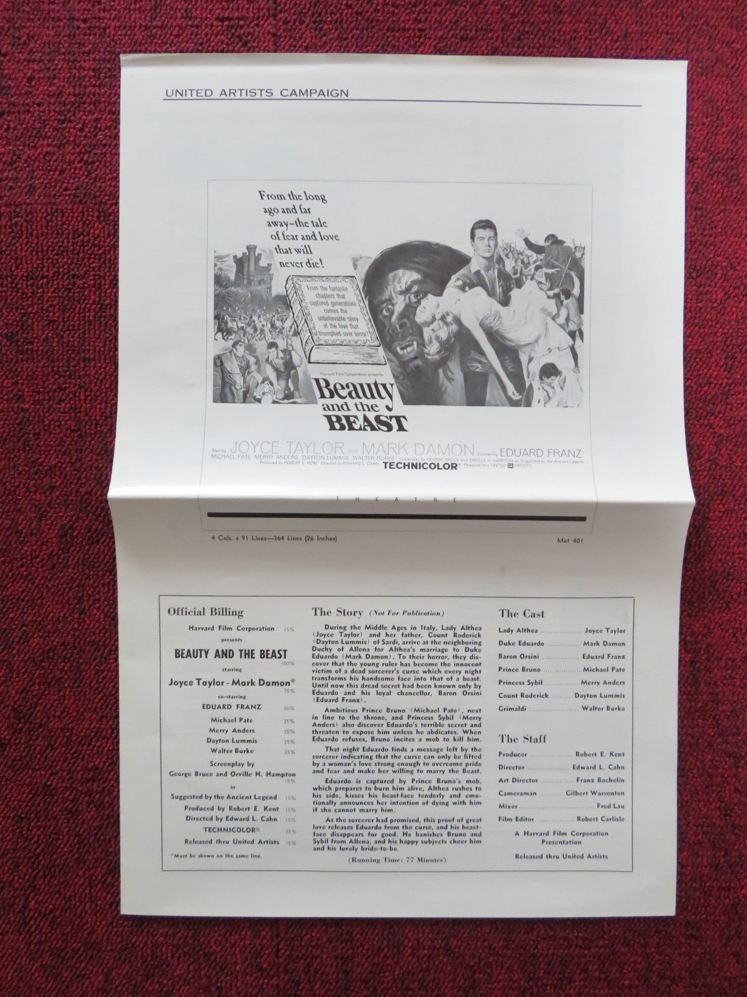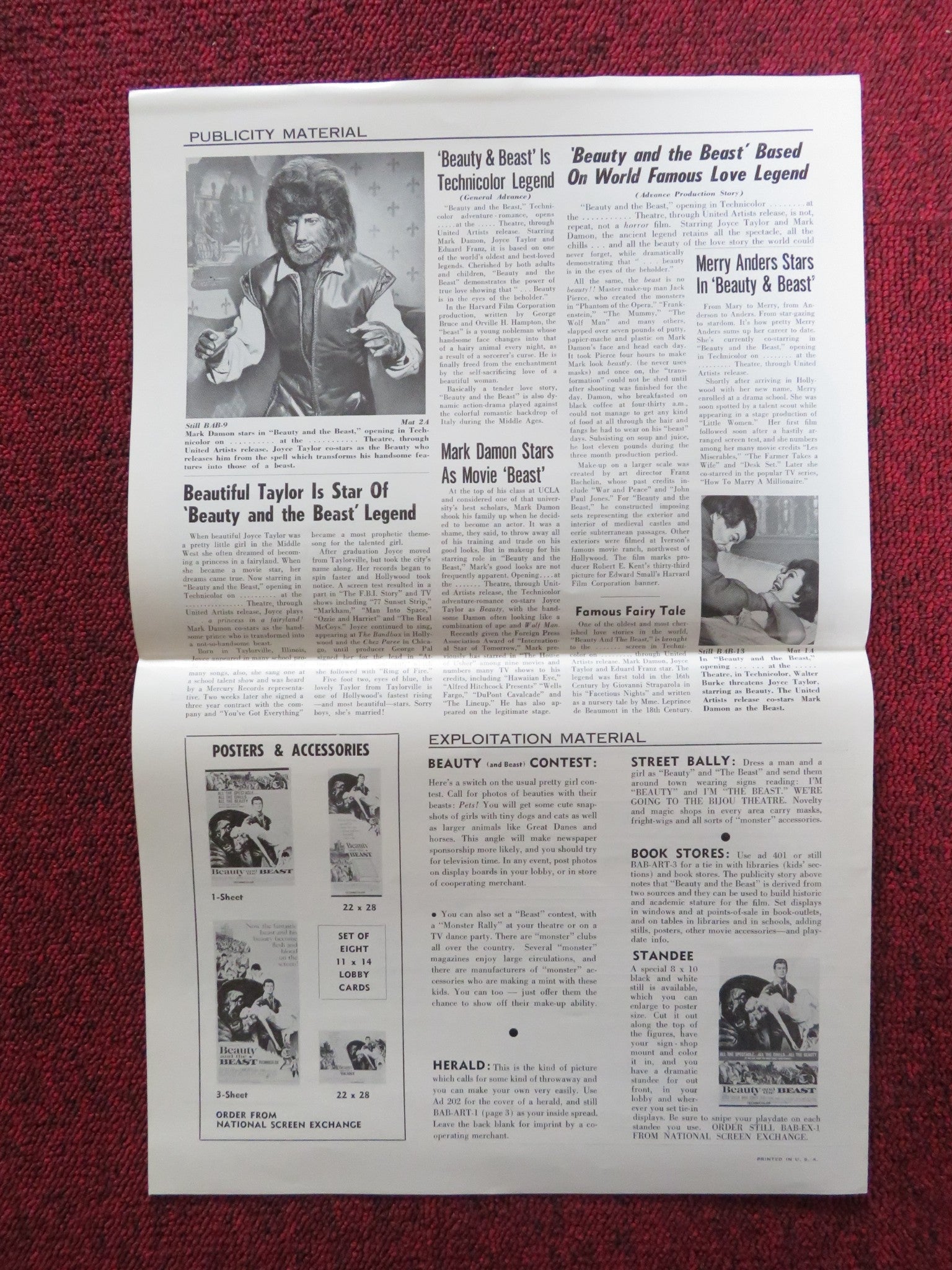 BEAUTY AND THE BEAST UNCUT FOLDED PRESS BOOK JOYCE TAYLOR MARK DAMON 1962