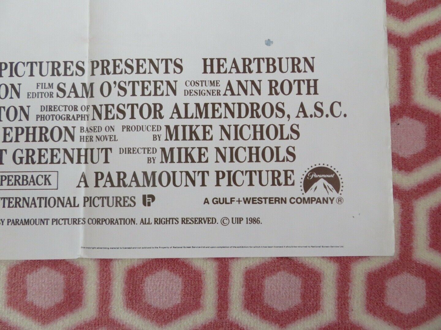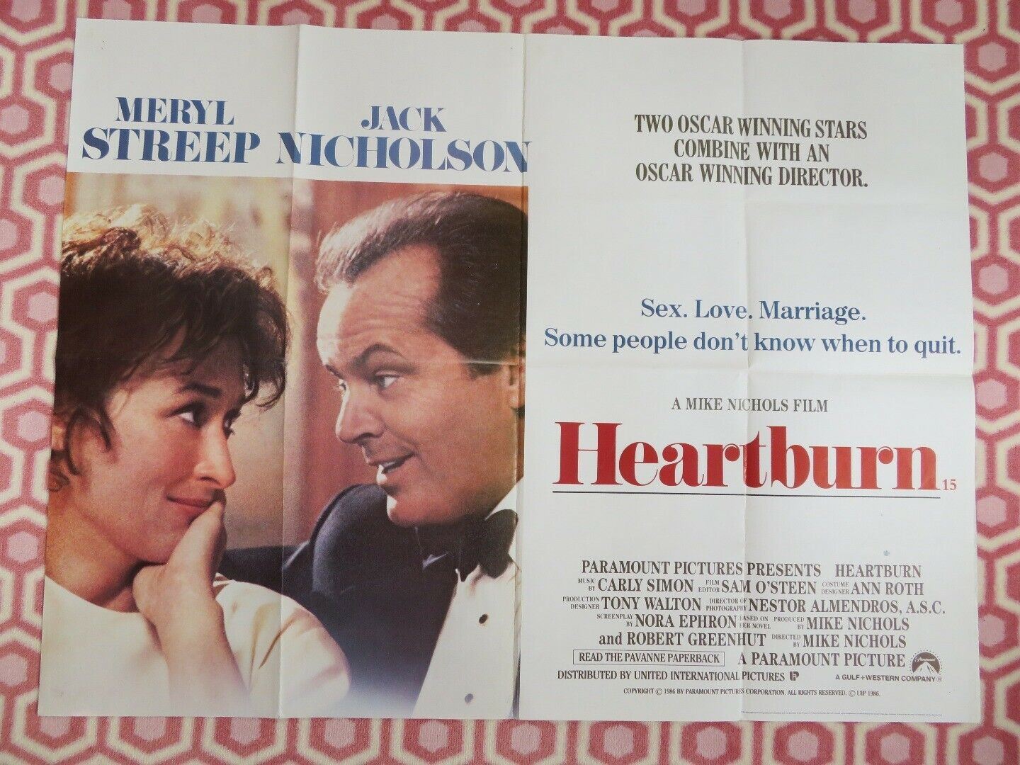 HEARTBURN BRITISH ORIGINAL QUAD POSTER NICHOLSON STREEP NICHOLS 1986