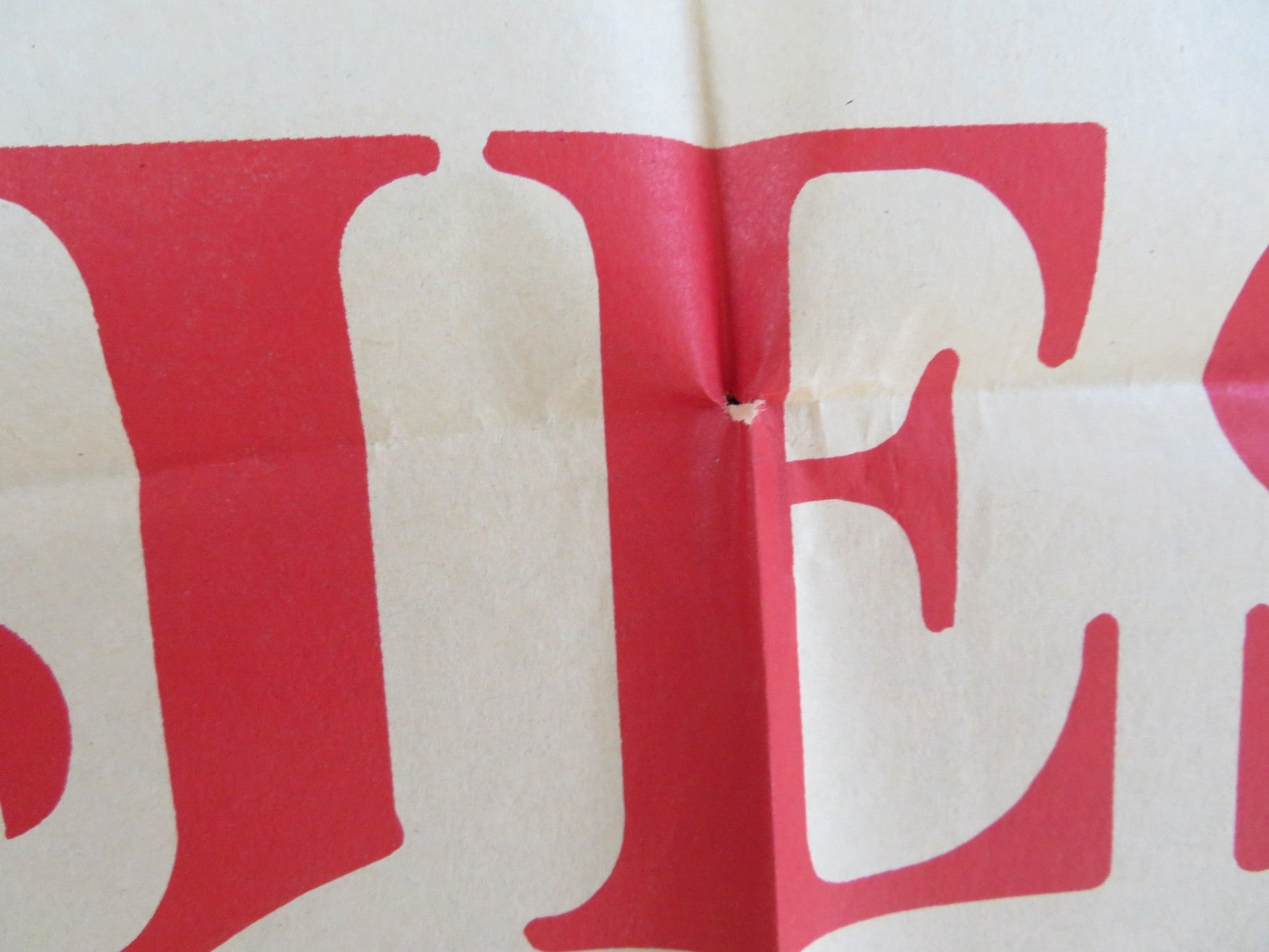 • Condition Specifics: Poster folded in fair condition. There may be small scuffs to edges and fold, scuffing more damage than would be expected in specific areas, chipping to edges of the poster not affecting the image of the poster, pinholes at the corner of the poster, small holes at the corner of the folds, some tearing to the poster mainly at the corners or folds, but overall the poster is in good condition for age. Please carefully inspect images before purchasing whilst remembering all posters are original and therefore used.