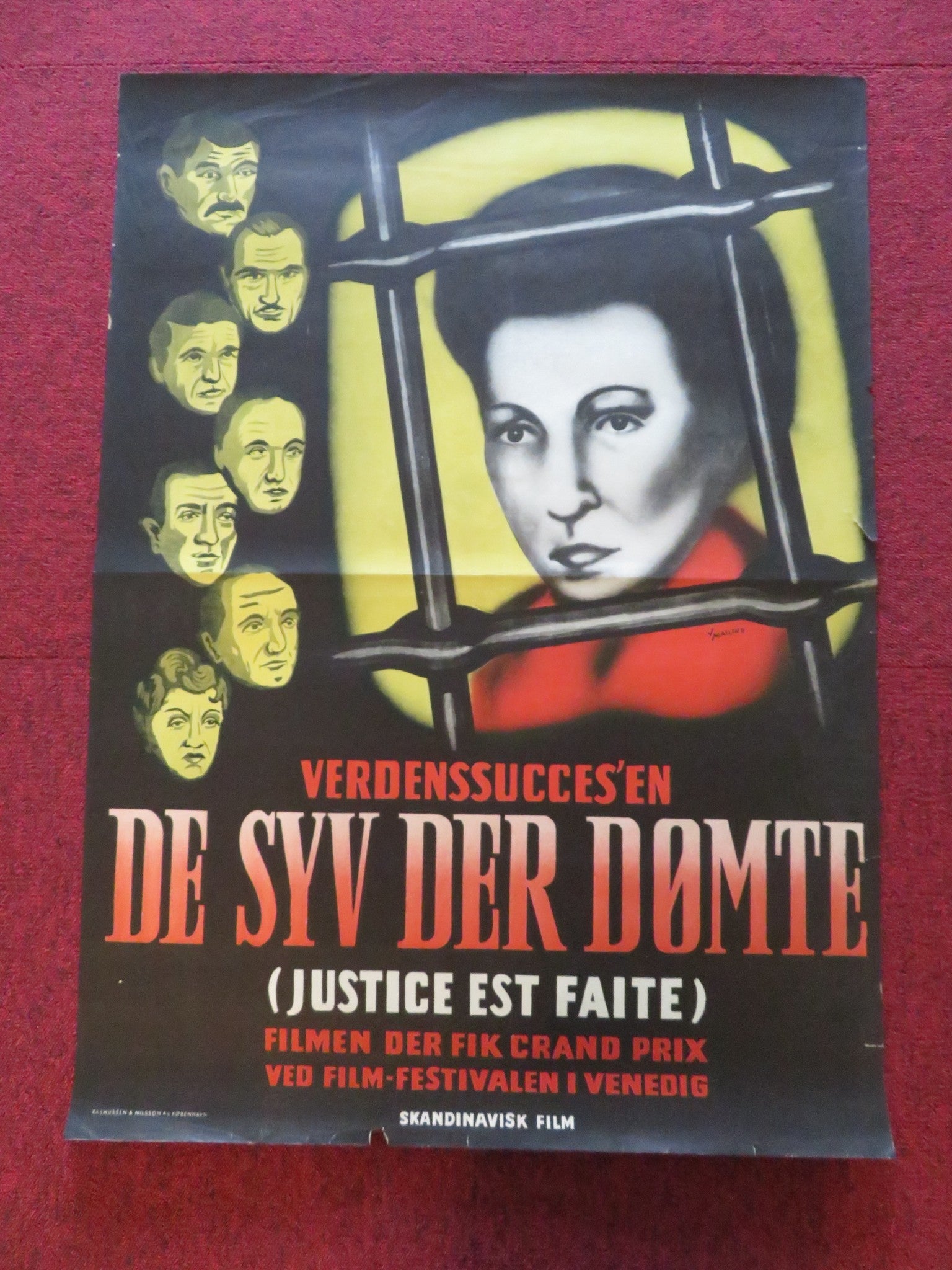 JUSTICE IS DONE DANISH POSTER ROLLED MICHEL AUCLAIR ANTOINE BALPETRE 1951