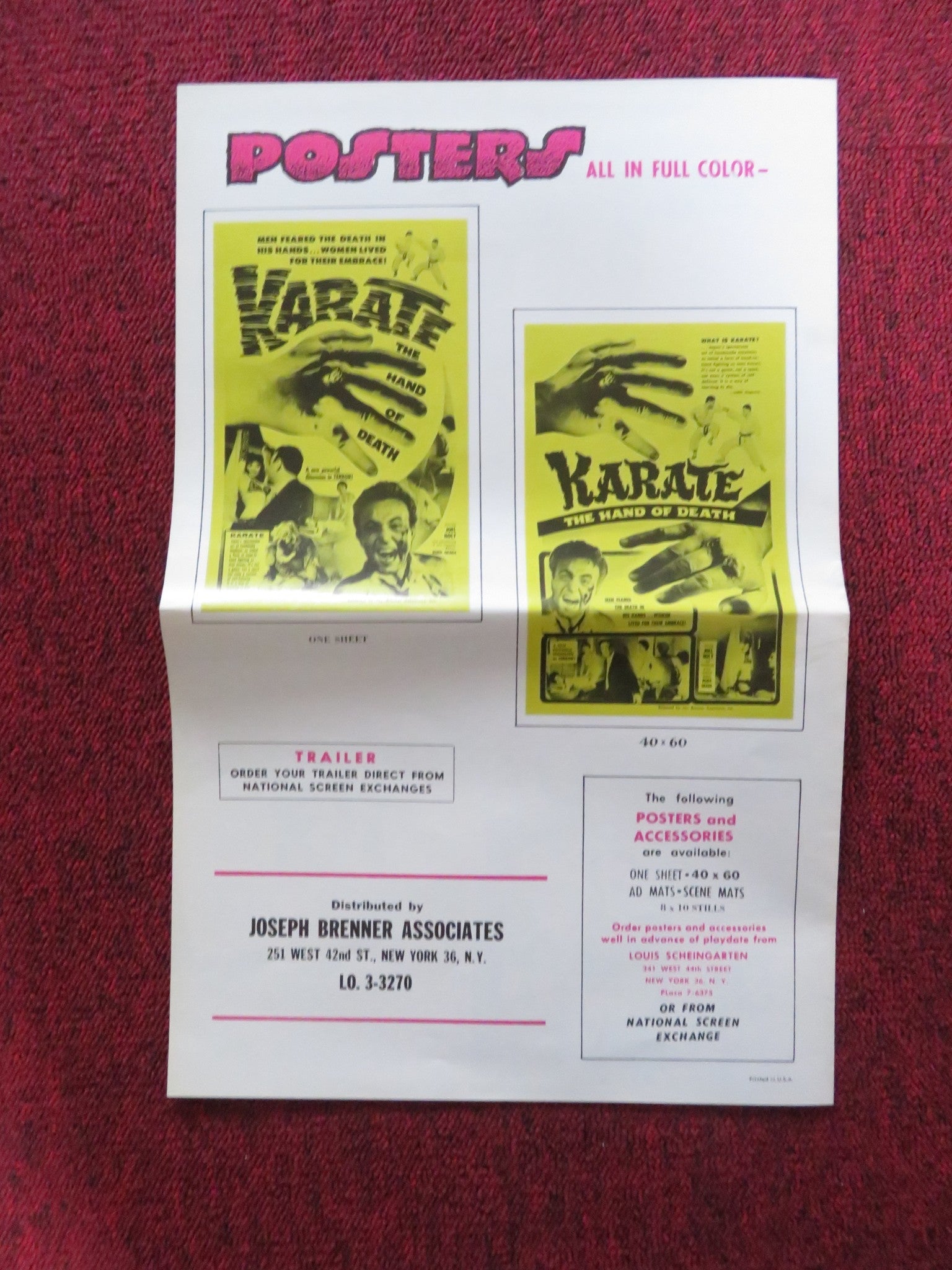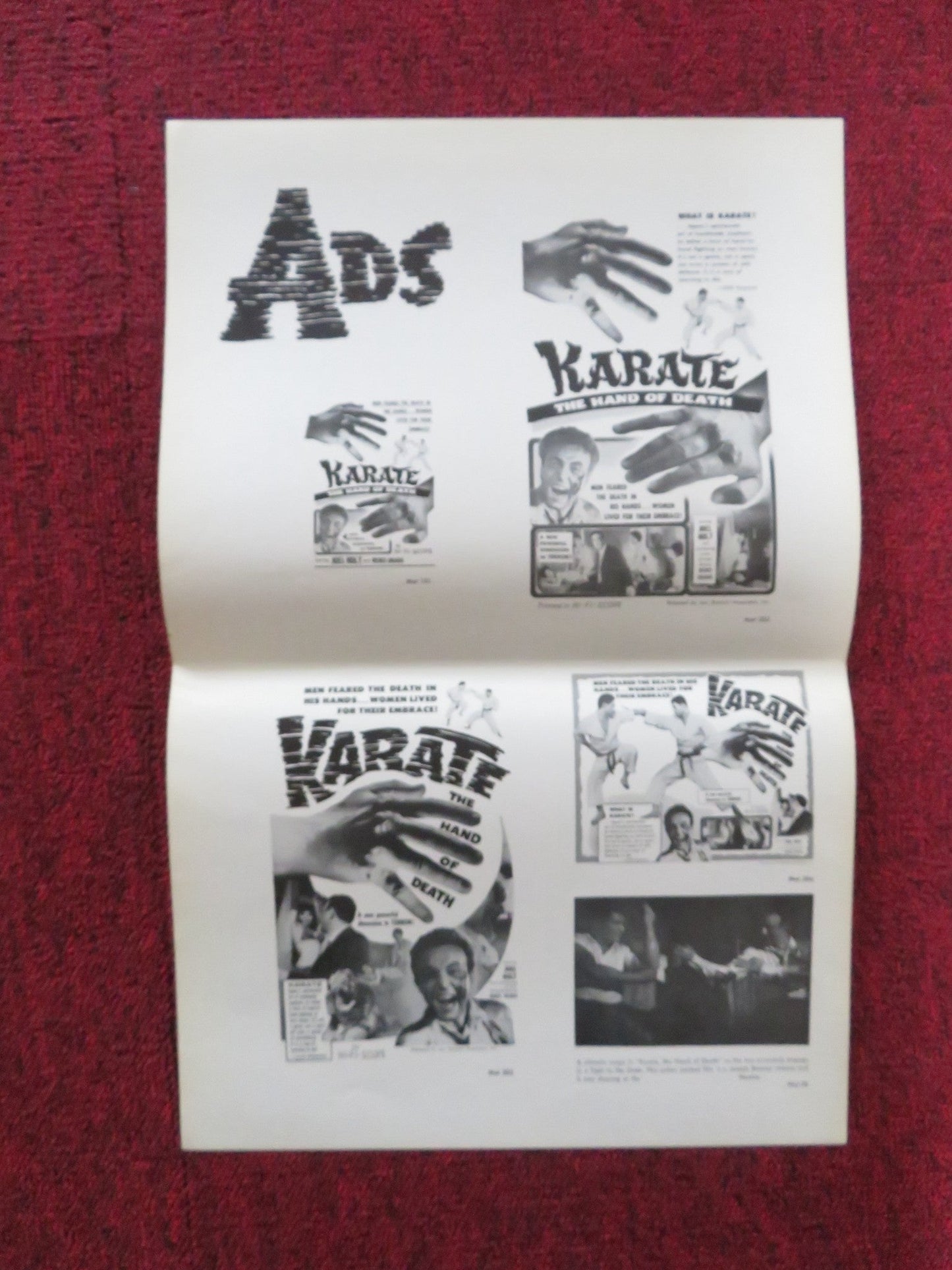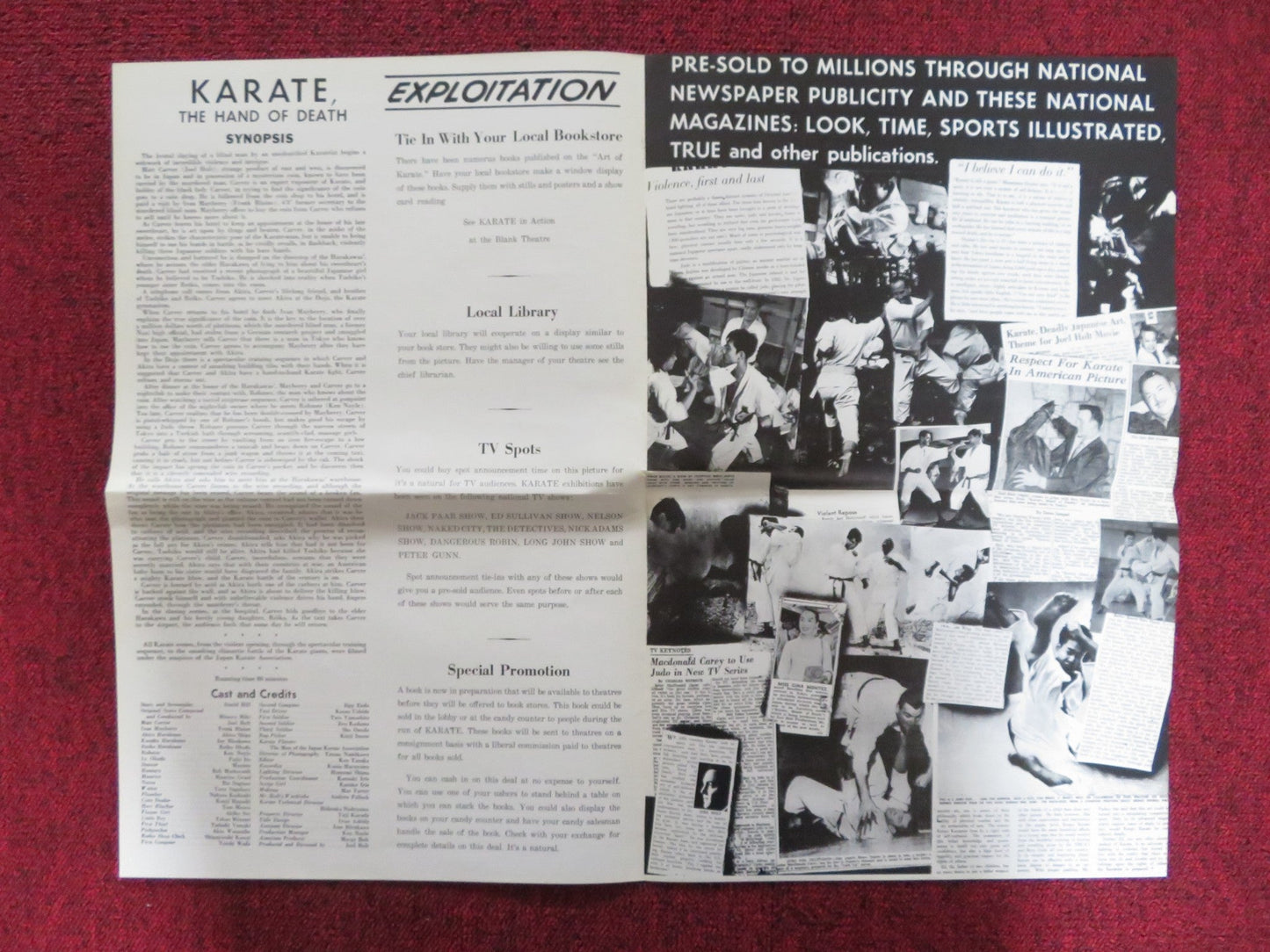 KARATE, THE HAND OF DEATH UNCUT FOLDED PRESS BOOK JOEL HOLT FRANK BLAINE 1961