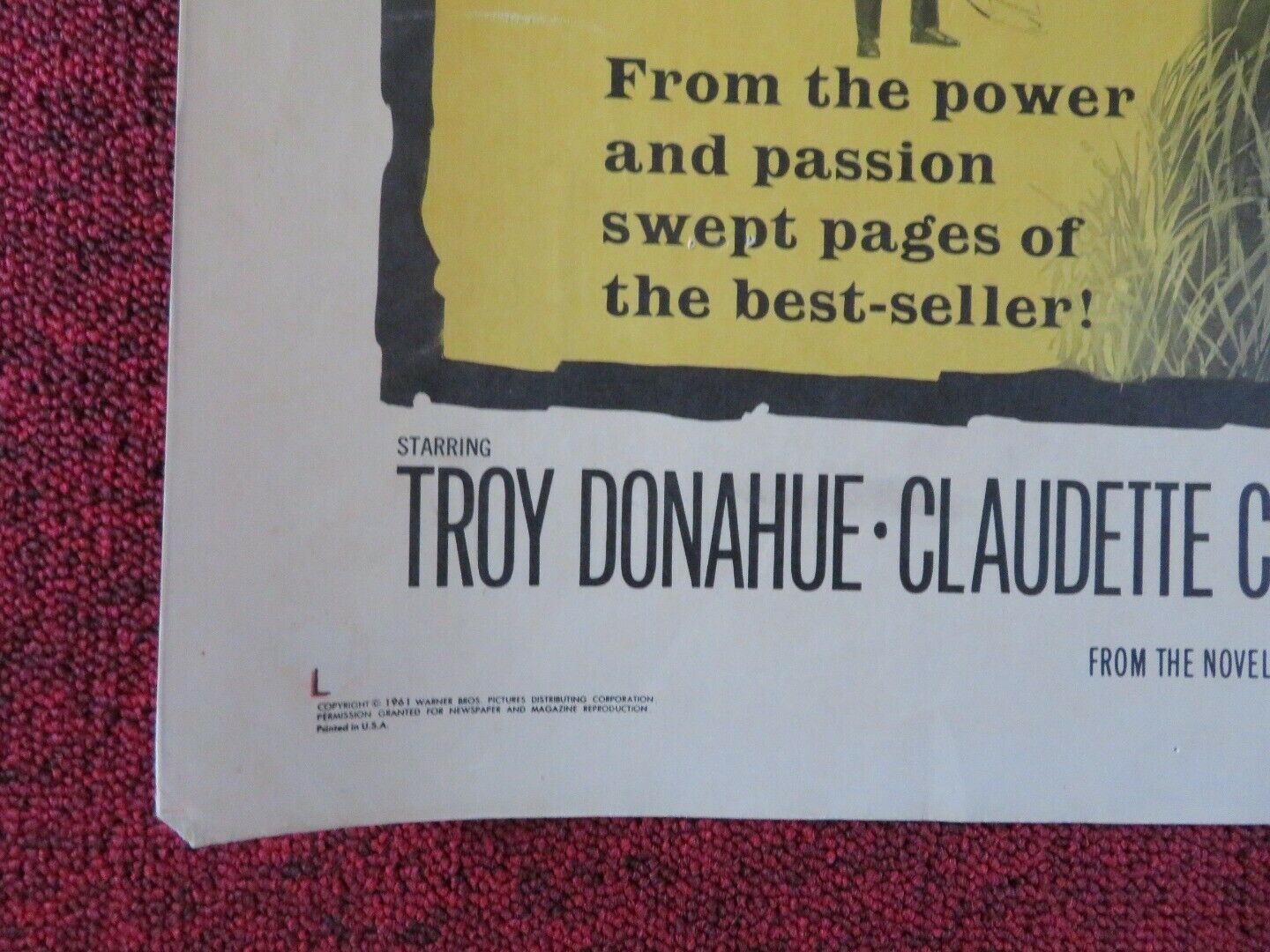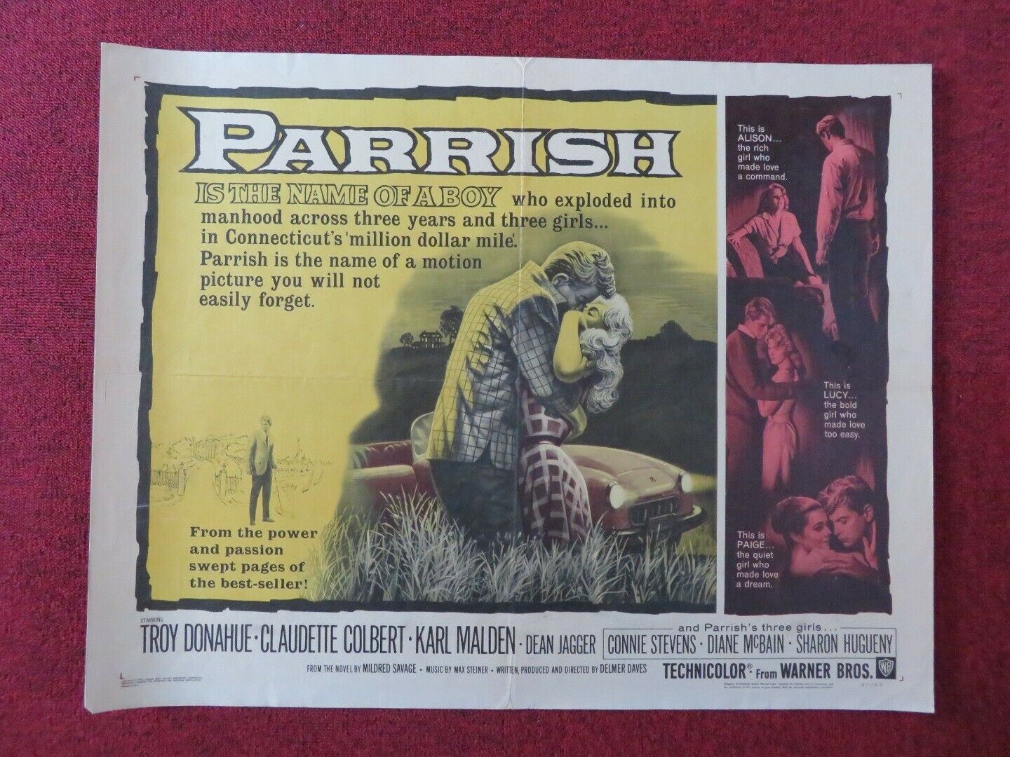 PARRISH US HALF SHEET (22"x 28") POSTER TROY DONAHUE KARL MALDEN 1961