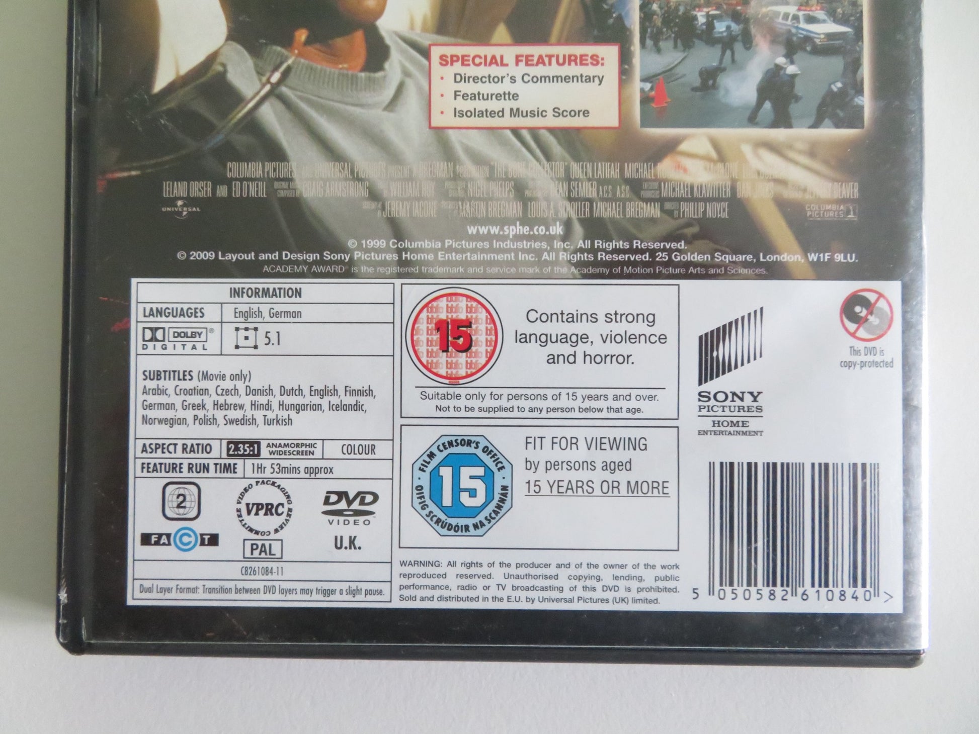 THE BONE COLLECTOR (DVD) DENZEL WASHINGTON ANGELINA JOLIE 1999 REGION 2