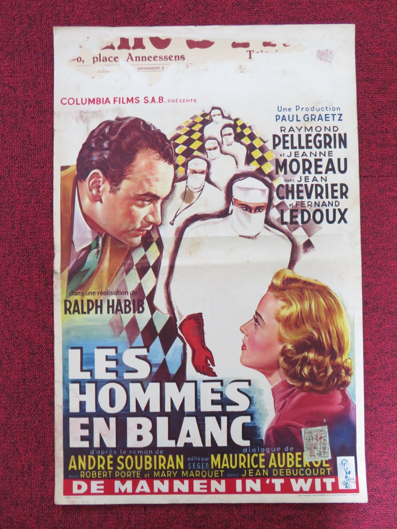 THE DOCTORS BELGIUM POSTER RAYMOND PELLEGRIN JEANNE MOREAU 1955