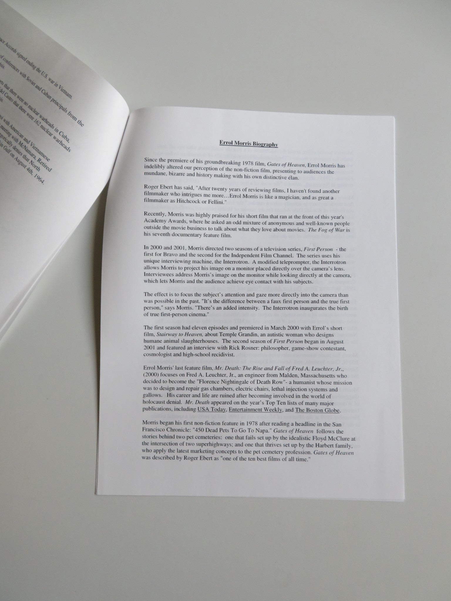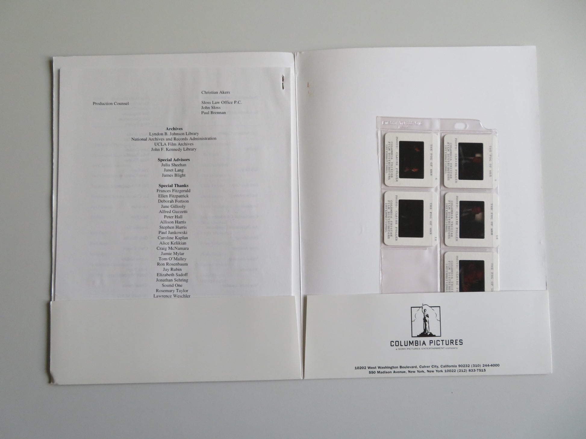 THE FOG OF WAR PRESS KIT 2003 ROBERT MCNAMARA