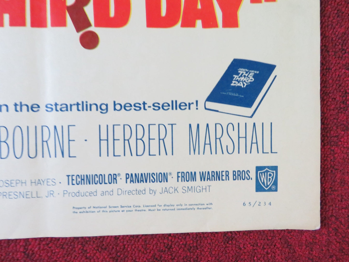 THE THIRD DAY US HALF SHEET (22"x 28") POSTER GEORGE PEPPARD E. ASHLEY 1965