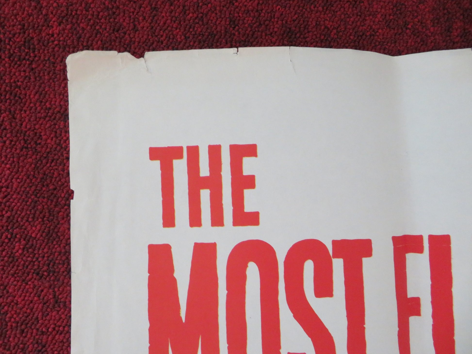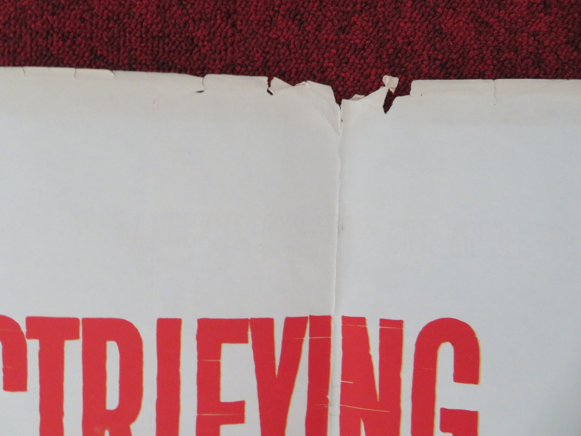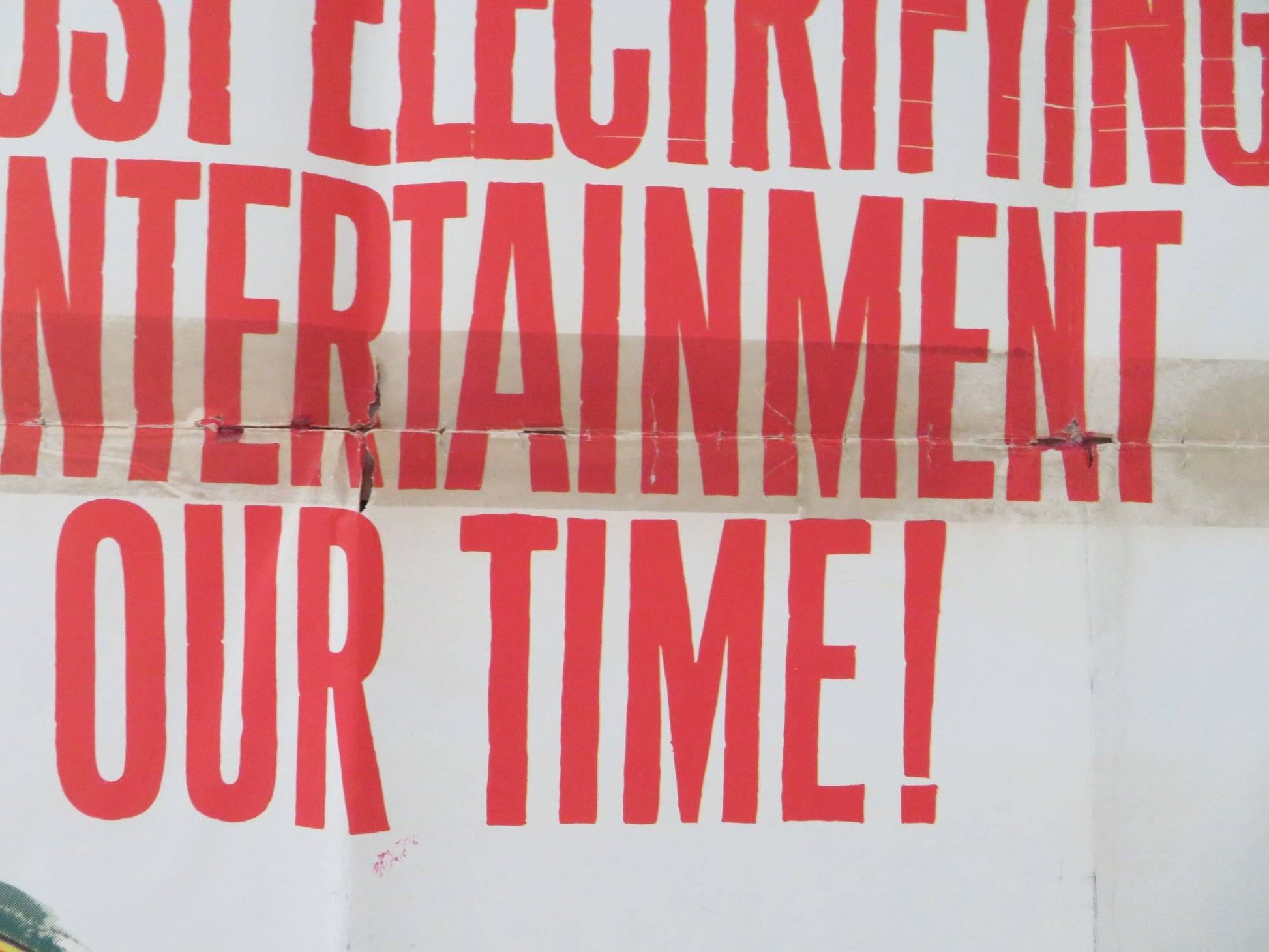 • Condition Specifics: Poster folded in poor condition. There may be small scuffs to edges and fold, scuffing more damage than would be expected in specific areas, chipping to edges of the poster not affecting the image of the poster, small holes at the corner of the folds, some tearing to the poster mainly at the corners or folds, tape has been used and is visible at the edges of the poster (repair), extra folds, see photos, but overall the poster is in poor condition for age. Please carefully inspect images before purchasing whilst remembering all posters are original and therefore used. Single sided poster.